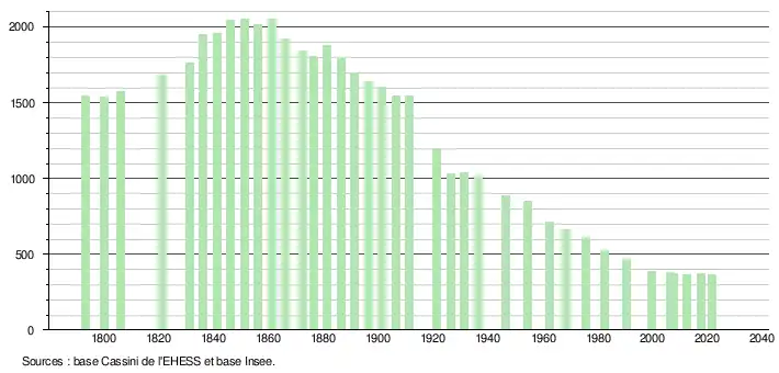 - Fiches Insee - Populations légales de la commune pour les années 2006, 2007, 2008, 2009, 2010, 2011, 2012, 2013, 2014, 2015, 2016, 2017, 2018, 2019, 2020 et 2021.