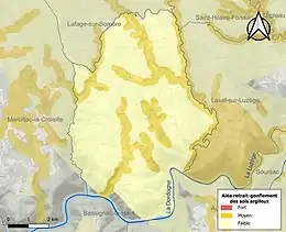 Le retrait-gonflement des sols argileux est susceptible d'engendrer des dommages importants aux bâtiments en cas d’alternance de périodes de sécheresse et de pluie. 24,5 % de la superficie communale est en aléa moyen ou fort (26,8 % au niveau départemental et 48,5 % au niveau national). Sur les 203 bâtiments dénombrés sur la commune en 2019, 30 sont en aléa moyen ou fort, soit 15 %, à comparer aux 36 % au niveau départemental et 54 % au niveau national. Une cartographie de l'exposition du territoire national au retrait gonflement des sols argileux est disponible sur le site du BRGM[16],[Carte 2].