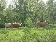 L'occupation des sols de la commune, telle qu'elle ressort de la base de données européenne d’occupation biophysique des sols Corine Land Cover (CLC), est marquée par l'importance des territoires agricoles (69,2 % en 2018), néanmoins en diminution par rapport à 1990 (74,6 %). La répartition détaillée en 2018 est la suivante : zones agricoles hétérogènes (45,2 %), prairies (22,6 %), forêts (13,9 %), zones urbanisées (12,5 %), eaux continentales[Note 3] (2,3 %), zones industrielles ou commerciales et réseaux de communication (2,1 %), terres arables (1,4 %)[15]. L'évolution de l’occupation des sols de la commune et de ses infrastructures peut être observée sur les différentes représentations cartographiques du territoire : la carte de Cassini (XVIIIe siècle), la carte d'état-major (1820-1866) et les cartes ou photos aériennes de l'IGN pour la période actuelle (1950 à aujourd'hui)[Carte 1].