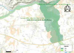 - « la Garonne et milieux riverains, en aval de Montréjeau » (6 874 ha), couvrant 93 communes dont 64 dans la Haute-Garonne, trois dans le Lot-et-Garonne et 26 dans le Tarn-et-Garonne[24].