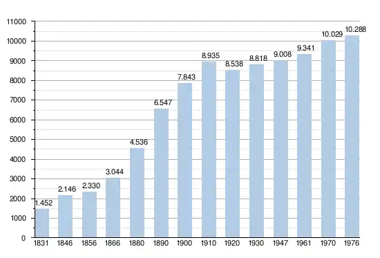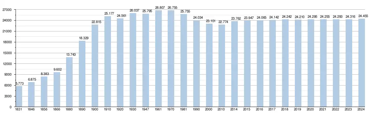 - Source: DGS , de 1831 à 1981=recensements population; à partir de 1990 = nombre d'habitants chaque 1 janvier