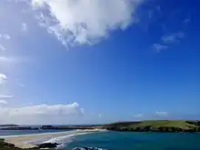 Saint-Ninian est une île-barrière du Royaume-Uni située dans l'archipel des Shetland. Le cordon littoral qui la relie à la côte sud-ouest des Shetland est le tombolo le plus long du Royaume-Uni[1]. L'île est rattachée à la paroisse civile de Dunrossness. Son tombolo, qualifié localement d’ayre[2] (mot emprunté au vieux norrois et signifiant « plage de cailloux[3] »), a une longueur de 500 m[4].