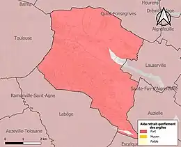 Le retrait-gonflement des sols argileux est susceptible d'engendrer des dommages importants aux bâtiments en cas d’alternance de périodes de sécheresse et de pluie. 98,4 % de la superficie communale est en aléa moyen ou fort (88,8 % au niveau départemental et 48,5 % au niveau national). Sur les 3 820 bâtiments dénombrés sur la commune en 2019, 3 814 sont en aléa moyen ou fort, soit 100 %, à comparer aux 98 % au niveau départemental et 54 % au niveau national. Une cartographie de l'exposition du territoire national au retrait gonflement des sols argileux est disponible sur le site du BRGM[28],[Carte 3].