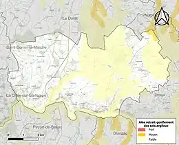 Le retrait-gonflement des sols argileux est susceptible d'engendrer des dommages importants aux bâtiments en cas d’alternance de périodes de sécheresse et de pluie[17]. 0,6 % de la superficie communale est en aléa moyen ou fort (27 % au niveau départemental et 48,5 % au niveau national métropolitain)[Carte 2]. Depuis le , en application de la loi ÉLAN, différentes contraintes s'imposent aux vendeurs, maîtres d'ouvrages ou constructeurs de biens situés dans une zone classée en aléa moyen ou fort[Note 3],[18].