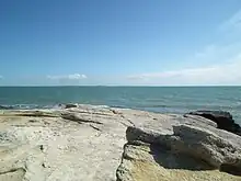 Le littoral est formé pour une grande part d'une alternance de promontoires rocheux (du nord au sud : esplanade du Concié, corniche de Terre-Nègre, corniche du Platin et corniche de Nauzan) et de conches (terme local désignant certains types de plages, de par leur forme incurvée rappelant ces coquillages) de sable fin. Des formations géologiques ciselées par l'érosion marine se distinguent çà et là : les plus célèbres sont le pont du Diable, aux formes torturées, la roche au Moine ou le puits de l'Auture, et peuvent être observées depuis le sentier des Douaniers, véritable balcon sur l'océan. On dénombre quatre conches, qui sont, du nord au sud : la plage du Concié, la plus petite, la plage du Platin, la plage du Bureau[11] (dite aussi de Saint-Palais, et située en centre-ville) et la plage de Nauzan.