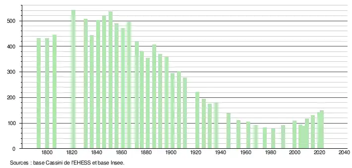 - Fiches Insee - Populations légales de la commune pour les années 2006, 2007, 2008, 2009, 2010, 2011, 2012, 2013, 2014, 2015, 2016, 2017, 2018, 2019, 2020 et 2021.