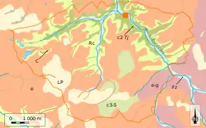 L'occupation des sols de la commune, telle qu'elle ressort de la base de données européenne d’occupation biophysique des sols Corine Land Cover (CLC), est marquée par l'importance des territoires agricoles (82,2 % en 2018), une proportion sensiblement équivalente à celle de 1990 (82,5 %). La répartition détaillée en 2018 est la suivante : terres arables (53,2 %), prairies (14,8 %), forêts (14,5 %), zones agricoles hétérogènes (10,6 %), cultures permanentes (3,6 %), zones urbanisées (3,2 %)[30]. L'évolution de l’occupation des sols de la commune et de ses infrastructures peut être observée sur les différentes représentations cartographiques du territoire : la carte de Cassini (XVIIIe siècle), la carte d'état-major (1820-1866) et les cartes ou photos aériennes de l'IGN pour la période actuelle (1950 à aujourd'hui)[Carte 2].