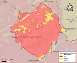 Le retrait-gonflement des sols argileux est susceptible d'engendrer des dommages importants aux bâtiments en cas d’alternance de périodes de sécheresse et de pluie. 99,8 % de la superficie communale est en aléa moyen ou fort (67,7 % au niveau départemental et 48,5 % au niveau national). Sur les 571 bâtiments dénombrés sur la commune en 2019, 568 sont en aléa moyen ou fort, soit 99 %, à comparer aux 72 % au niveau départemental et 54 % au niveau national. Une cartographie de l'exposition du territoire national au retrait gonflement des sols argileux est disponible sur le site du BRGM[20],[21].