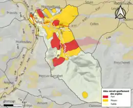 Les mouvements de terrains susceptibles de se produire sur la commune sont soit des chutes de blocs, soit des glissements de terrains, soit des mouvements liés au retrait-gonflement des argiles. Près de 50 % de la superficie du département est concernée par l'aléa retrait-gonflement des argiles, dont la commune de Saint-Paul-de-Jarrat[42]. L'inventaire national des cavités souterraines permet par ailleurs de localiser celles situées sur la commune[43].