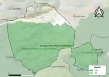 L'occupation des sols de la commune, telle qu'elle ressort de la base de données européenne d'occupation biophysique des sols Corine Land Cover (CLC), est marquée par l'importance des forêts et milieux semi-naturels (79,2 % en 2018), en augmentation par rapport à 1990 (76 %). La répartition détaillée en 2018 est la suivante : milieux à végétation arbustive et/ou herbacée (42,9 %), forêts (36,3 %), cultures permanentes (10,7 %), zones urbanisées (6,3 %), zones agricoles hétérogènes (3,8 %)[20]. L'évolution de l'occupation des sols de la commune et de ses infrastructures peut être observée sur les différentes représentations cartographiques du territoire : la carte de Cassini (XVIIIe siècle), la carte d'état-major (1820-1866) et les cartes ou photos aériennes de l'IGN pour la période actuelle (1950 à aujourd'hui)[Carte 1].