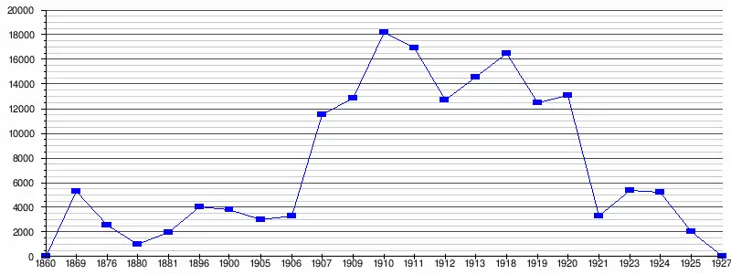 L'évolution du nombre d'habitants est connue à travers les recensements de la population effectués dans la commune depuis 1793. Pour les communes de moins de 10 000 habitants, une enquête de recensement portant sur toute la population est réalisée tous les cinq ans, les populations légales des années intermédiaires étant quant à elles estimées par interpolation ou extrapolation[34]. Pour la commune, le premier recensement exhaustif entrant dans le cadre du nouveau dispositif a été réalisé en 2007[35].
