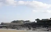 L'arche de Port Blanc, et en arrière-plan, la « maison des douaniers », deux symboles de la commune. | |||||