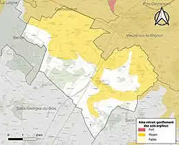 Le retrait-gonflement des sols argileux est susceptible d'engendrer des dommages importants aux bâtiments en cas d’alternance de périodes de sécheresse et de pluie. 52,7 % de la superficie communale est en aléa moyen ou fort (54,2 % au niveau départemental et 48,5 % au niveau national). Sur les 256 bâtiments dénombrés sur la commune en 2019, 193 sont en aléa moyen ou fort, soit 75 %, à comparer aux 57 % au niveau départemental et 54 % au niveau national. Une cartographie de l'exposition du territoire national au retrait gonflement des sols argileux est disponible sur le site du BRGM[13],[Carte 2].