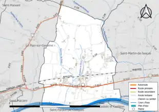 Le territoire communal est traversé par la route départementale 1113, ancienne route nationale 113 (Marseille-Bordeaux) qui mène vers l'ouest à Langon et vers l'est à La Réole.