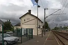 Une gare ferroviaire est desservie par les TER assurant la liaison avec les gares de Laval, Vitré et Rennes. Cette gare dispose également d'un embranchement destiné à la cimenterie Lafarge.
