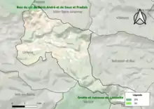 L’inventaire des zones naturelles d'intérêt écologique, faunistique et floristique (ZNIEFF) a pour objectif de réaliser une couverture des zones les plus intéressantes sur le plan écologique, essentiellement dans la perspective d’améliorer la connaissance du patrimoine naturel national et de fournir aux différents décideurs un outil d’aide à la prise en compte de l’environnement dans l’aménagement du territoire. Une ZNIEFF de type 1[Note 2] est recensée sur la commune[15] : le « bois du col de Saint-André et de Saux et Pradals » (1 290 ha), couvrant 7 communes du département[16] et une ZNIEFF de type 2[Note 3],[15] : les « Corbières occidentales » (59 005 ha), couvrant 66 communes du département[17].