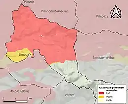 Le retrait-gonflement des sols argileux est susceptible d'engendrer des dommages importants aux bâtiments en cas d’alternance de périodes de sécheresse et de pluie. 72,8 % de la superficie communale est en aléa moyen ou fort (75,2 % au niveau départemental et 48,5 % au niveau national). Sur les 126 bâtiments dénombrés sur la commune en 2019, 123 sont en aléa moyen ou fort, soit 98 %, à comparer aux 94 % au niveau départemental et 54 % au niveau national. Une cartographie de l'exposition du territoire national au retrait gonflement des sols argileux est disponible sur le site du BRGM[23],[Carte 3].