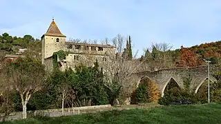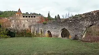 Le patrimoine architectural de la commune comprend deux immeubles protégés au titre des monuments historiques : l'Abbatiale Saint-Polycarpe, classée en 1913, et l'abbaye de Saint-Polycarpe, inscrite en 1990.