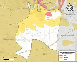 Les mouvements de terrains susceptibles de se produire sur la commune sont des tassements différentiels[17]. Le retrait-gonflement des sols argileux est susceptible d'engendrer des dommages importants aux bâtiments en cas d’alternance de périodes de sécheresse et de pluie[18]. 38,9 % de la superficie communale est en aléa moyen ou fort (54,9 % au niveau départemental et 48,5 % au niveau national)[Carte 2]. Depuis le , en application de la loi ELAN, différentes contraintes s'imposent aux vendeurs, maîtres d'ouvrages ou constructeurs de biens situés dans une zone classée en aléa moyen ou fort[Note 3],[19].