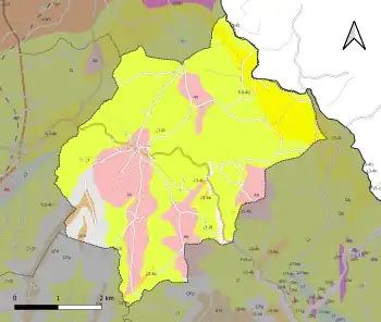 L'occupation des sols de la commune, telle qu'elle ressort de la base de données européenne d’occupation biophysique des sols Corine Land Cover (CLC), est marquée par l'importance des territoires agricoles (69,1 % en 2018), une proportion sensiblement équivalente à celle de 1990 (69,6 %). La répartition détaillée en 2018 est la suivante : zones agricoles hétérogènes (45,3 %), forêts (29,6 %), prairies (17,6 %), cultures permanentes (3,2 %), terres arables (3 %), zones urbanisées (1,3 %)[35]. L'évolution de l’occupation des sols de la commune et de ses infrastructures peut être observée sur les différentes représentations cartographiques du territoire : la carte de Cassini (XVIIIe siècle), la carte d'état-major (1820-1866) et les cartes ou photos aériennes de l'IGN pour la période actuelle (1950 à aujourd'hui)[Carte 3].