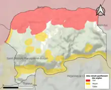 Le retrait-gonflement des sols argileux est susceptible d'engendrer des dommages importants aux bâtiments en cas d’alternance de périodes de sécheresse et de pluie. 47,3 % de la superficie communale est en aléa moyen ou fort (67,5 % au niveau départemental et 48,5 % au niveau national). Sur les 261 bâtiments dénombrés sur la commune en 2019, 251 sont en aléa moyen ou fort, soit 96 %, à comparer aux 90 % au niveau départemental et 54 % au niveau national. Une cartographie de l'exposition du territoire national au retrait gonflement des sols argileux est disponible sur le site du BRGM[22],[Carte 2].