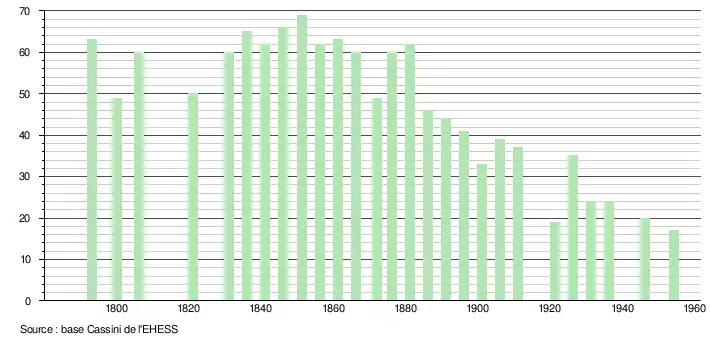 Jusqu'en 1960, la démographie de Saint-Quentin-sur-Allan était :
