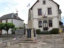 La place du village avec la mairie, le monument aux morts et l'église Saint-Sauveur. | |||||