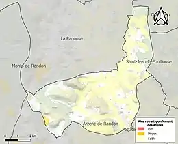 Le retrait-gonflement des sols argileux est susceptible d'engendrer des dommages importants aux bâtiments en cas d’alternance de périodes de sécheresse et de pluie. 0,5 % de la superficie communale est en aléa moyen ou fort (15,8 % au niveau départemental et 48,5 % au niveau national). Sur les 53 bâtiments dénombrés sur la commune en 2019, aucun n'est en aléa moyen ou fort, à comparer aux 14 % au niveau départemental et 54 % au niveau national. Une cartographie de l'exposition du territoire national au retrait gonflement des sols argileux est disponible sur le site du BRGM[17],[Carte 2].