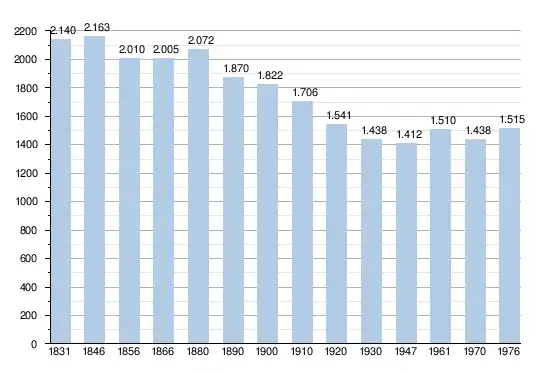 - Sources : INS, Rem. : 1831 jusqu'en 1970 = recensements, 1976 = nombre d'habitants au 31 décembre.