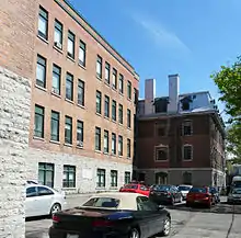 - En 1856, on construit la première école Marguerite-Bourgeoys (Frères des Écoles chrétiennes). Ce beau bâtiment sera détruit lors du grand incendie de 1866. Déjà, le 14 octobre 1866, on reconstruit le couvent Saint-Sauveur sous l'égide de la congrégation de Notre-Dame. Lors du centenaire en 1956, on célèbre avec faste alors que 742 élèves entourés de 25 religieuses et 14 laïques entreprennent l'année scolaire avec enthousiasme. Déjà on dresse les plans d'une nouvelle école et c'est ainsi qu'en 1958, l’école Marguerite-Bourgeoys ouvre ses portes[20]. L'école accueillera au plus fort de ses activités en 1967-68 1137 élèves confiés à une équipe de 77 professeurs. Aujourd'hui, cet établissement est l'école primaire du quartier.