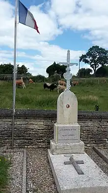 Le matin du , 3 compagnies du 4e bataillon de mobiles de la Loire, sous le commandement du capitaine de Franqueville[21], défendirent pendant une heure et demie la hauteur de Saint-Seine face à l'armée prussienne qui, venant de l'est, allait, le 31, occuper Dijon[22],[23]. De Franqueville avait fait prendre à deux de ses compagnies position derrière le mur du cimetière, la troisième protégeant sa gauche, pour arrêter les Prussiens arrivant de Gray, mais fut obligé de se replier pour éviter l'encerclement par un ennemi très supérieur en nombre[21]. Clément-Janin précise « pendant deux heures on échangea des coups de fusil sans avantage marqué de part ni d'autre » jusqu'à ce que l'ennemi mît son canon en batterie[24]. Selon Coynart, « les compagnies postées à Saint-Seine ne résistèrent pas plus de dix minutes »[25]. L'affaire fut néanmoins plus meurtrière que le combat livré le même jour à Talmay, puisqu'elle fit cinq blessés parmi les officiers français[26], dont l'aide-major André Chandelux[27] et cinq morts parmi les hommes de troupe, ce qui fut consigné du mieux possible par l'officier d'état-civil :