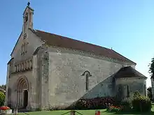 Cet édifice néo-roman forme un vaisseau unique de deux travées, terminé par une abside semi-circulaire. Deux absidioles viennent se greffer à la nef, dont l'une, datant de 1721, accueille la chapelle seigneuriale des barons d'Uzet.