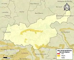 Les communes limitrophes sont Aurice, Audignon, Banos, Bas-Mauco, Benquet, Cauna, Eyres-Moncube, Montaut, Montgaillard, Montsoué, Saint-Maurice-sur-Adour et Toulouzette.