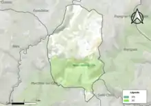 L'occupation des sols de la commune, telle qu'elle ressort de la base de données européenne d’occupation biophysique des sols Corine Land Cover (CLC), est marquée par l'importance des forêts et milieux semi-naturels (52,7 % en 2018), une proportion identique à celle de 1990 (53,2 %). La répartition détaillée en 2018 est la suivante : forêts (47,8 %), zones agricoles hétérogènes (45,9 %), milieux à végétation arbustive et/ou herbacée (4,9 %), prairies (1,4 %)[25]. L'évolution de l’occupation des sols de la commune et de ses infrastructures peut être observée sur les différentes représentations cartographiques du territoire : la carte de Cassini (XVIIIe siècle), la carte d'état-major (1820-1866) et les cartes ou photos aériennes de l'IGN pour la période actuelle (1950 à aujourd'hui)[Carte 1].