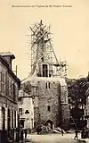 Bâtiment de la fin du XIe siècle pour ses parties les plus anciennes. Couvrement de style gothique (XIIe siècle). Reconstruction de la façade ouest (fin XVIe siècle). XVIIe siècle : séparation de la nef et du transept. Chœur reconstruit en 1824-1826 après son effondrement. L'église brûle en 1921. Les frères Perret (Auguste et Gustave) architectes, et des entrepreneurs locaux, reconstruisent donc le clocher, en briques et en béton en 1924. L'église, fruit d'une évolution hétéroclite de huit siècles, est inscrite au titre des monuments historiques depuis 2004 (inventaire supplémentaire des monuments historiques)[22]. Au sommet du clocher, se trouve un coq du sculpteur François Pompon.