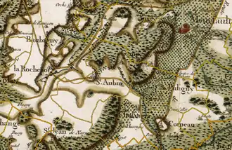 La voie de communication empruntant la vallée de Saint-Aubin est attestée avant l'an 1000 ; un château fort du XIIIe siècle en contrôle l'accès, le château de Gamay[15].