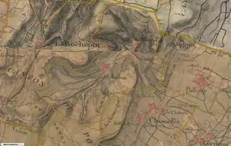 L'aire de production se divise approximativement en trois zones[45]. La première se compose d'abord d'une partie du haut de la côte d'Or, intégralement classée en premier cru et produisant du blanc (« Le Charmois », « Pitangeret », « Les Combes au Sud », « En Remilly » et « Les Murgers des Dents de Chien »[n 6]) car dans l'alignement des puligny-montrachet et chassagne-montrachet premiers crus et juste au-dessus des grands crus montrachet et chevalier-montrachet. Ensuite viennent l'extrémité aval de la vallée, là aussi classé en premier cru et produisant surtout du blanc, entre la côte de le hameau de Gamay (« Les Cortons », « Le Bas de Gamay à l'Est », « La Chatenière », « Sur Gamay », « Sous Roche Dumay », « Les Champlots » et « En Montceau »).
