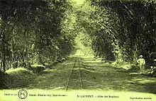 La gare de Saint-Laurent n'était qu'un vaste hangar bancal couvert de tôles ondulées pour abriter les wagons à voyageurs[22]. Actuellement, il n'en reste qu'une charpente métallique envahie par la brousse[21]. Ces wagons étaient des sortes de plates-formes montées sur boggies. Ils étaient bâchés et équipés de banquettes. C'était le moyen préféré de transport des garde-chiourmes qui, lors de leur jour de congé, partaient en groupe pour aller à Saint-Jean voir les relégués (« pieds-de-biche » dans le jargon pénitentiaire). Par temps sec, ils y perdaient leur complet blanc mis à mal par les flammèches embrasées de la locomotive, par temps de pluie, ils étaient totalement trempés en dépit des bâches protectrices[22]. Cette voie de chemin de fer servait aussi pour faire circuler le pousse. C'était une sorte de wagonnet poussé par deux bagnards munis d'une perche. Ce pousse était à la disposition du personnel administratif du bagne et de leur famille[21].