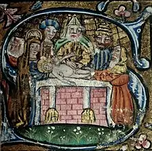 - Friedrich Herlin, Circoncision de Jésus sur le Retable des douze apôtres (1466), maître-autel de l'église Saint-Jacques de Rothenburg ob der Tauber,