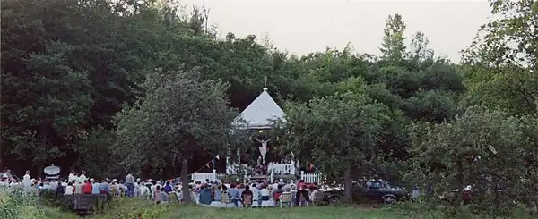 La paroisse catholique commence dès 1667 avec l'établissement des premiers colons. Une chapelle est sans doute aménagée dans une des maisons du lieu. Vers 1671 est construite la première église. Le plus vieil acte des registres paroissiaux conservés date de 1679. Il est possible qu'ils aient été ouverts dès 1667[10]. Il faudra attendre l'année 1693 pour que la paroisse puisse subvenir entièrement aux besoins d'un curé qui pourra alors y résider en permanence. L'érection canonique de la paroisse date du .