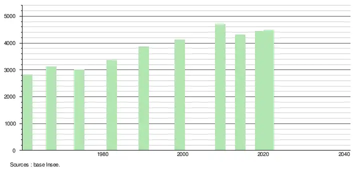 L'évolution du nombre d'habitants est connue à travers les recensements de la population effectués dans la commune depuis 1961, premier recensement postérieur à la départementalisation de 1946. À partir de 2006, les populations légales des communes sont publiées annuellement par l'Insee. Le recensement repose désormais sur une collecte d'information annuelle, concernant successivement tous les territoires communaux au cours d'une période de cinq ans. Pour les communes de moins de 10 000 habitants, une enquête de recensement portant sur toute la population est réalisée tous les cinq ans, les populations légales des années intermédiaires étant quant à elles estimées par interpolation ou extrapolation[13]. Pour la commune, le premier recensement exhaustif entrant dans le cadre du nouveau dispositif a été réalisé en 2004[14].