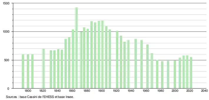 - Fiches Insee - Populations légales de la commune pour les années 2006, 2007, 2008, 2009, 2010, 2011, 2012, 2013, 2014, 2015, 2016, 2017, 2018, 2019, 2020 et 2021.