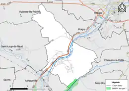 Par ailleurs, son territoire est également traversé par le canal des Ormes[Note 1], aqueduc, conduite forcée de 24,31 km[6] qui conflue avec la Voulzie et par l’aqueduc de la Voulzie.