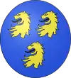 Blason | Coupé : au premier de sinople à la bande d'or, au second d'argent au renard d'azur[35]. |