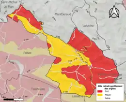 Les mouvements de terrains susceptibles de se produire sur la commune sont soit des chutes de blocs, soit des glissements de terrains, soit des effondrements liés à des cavités souterraines, soit des mouvements liés au retrait-gonflement des argiles. Près de 50 % de la superficie du département est concernée par l'aléa retrait-gonflement des argiles, dont la commune de Sainte-Croix-Volvestre[39]. L'inventaire national des cavités souterraines permet par ailleurs de localiser celles situées sur la commune[40].