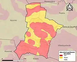 Le retrait-gonflement des sols argileux est susceptible d'engendrer des dommages importants aux bâtiments en cas d’alternance de périodes de sécheresse et de pluie. La totalité de la commune est en aléa moyen ou fort (75,2 % au niveau départemental et 48,5 % au niveau national). Sur les 235 bâtiments dénombrés sur la commune en 2019, 235 sont en aléa moyen ou fort, soit 100 %, à comparer aux 94 % au niveau départemental et 54 % au niveau national. Une cartographie de l'exposition du territoire national au retrait gonflement des sols argileux est disponible sur le site du BRGM[21],[Carte 3].