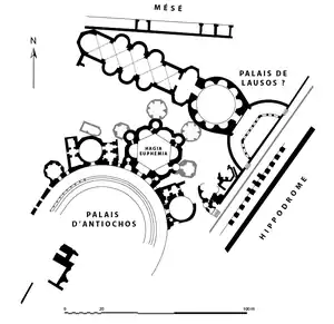 Ce sont les fouilles de Sainte-Euphémie en 1942 et 1950-1952 qui révélèrent l'existence du palais d'Antiochos.