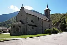 Vue du chef-lieu de la commune en arrivant de Saint-Jean-de-Maurienne. | |||||