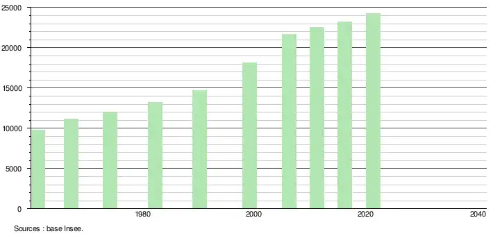 L'évolution du nombre d'habitants est connue à travers les recensements de la population effectués dans la commune depuis 1961, premier recensement postérieur à la départementalisation de 1946. À partir de 2006, les populations légales des communes sont publiées annuellement par l'Insee. Le recensement repose désormais sur une collecte d'information annuelle, concernant successivement tous les territoires communaux au cours d'une période de cinq ans. Pour les communes de plus de 10 000 habitants les recensements ont lieu chaque année à la suite d'une enquête par sondage auprès d'un échantillon d'adresses représentant 8 % de leurs logements, contrairement aux autres communes qui ont un recensement réel tous les cinq ans[18],[Note 3].