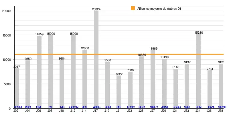 L'affluence à domicile du Stade lavallois atteint un total de 210 809 spectateurs en 19 rencontres de Division 1, soit une moyenne de 11 095/match.